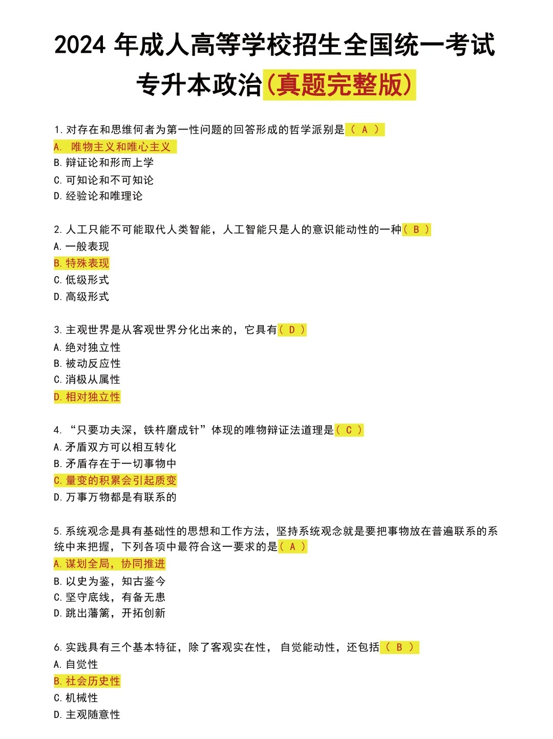 • 2023年浙江成人高考专升本政治真题及答案回忆版!!!