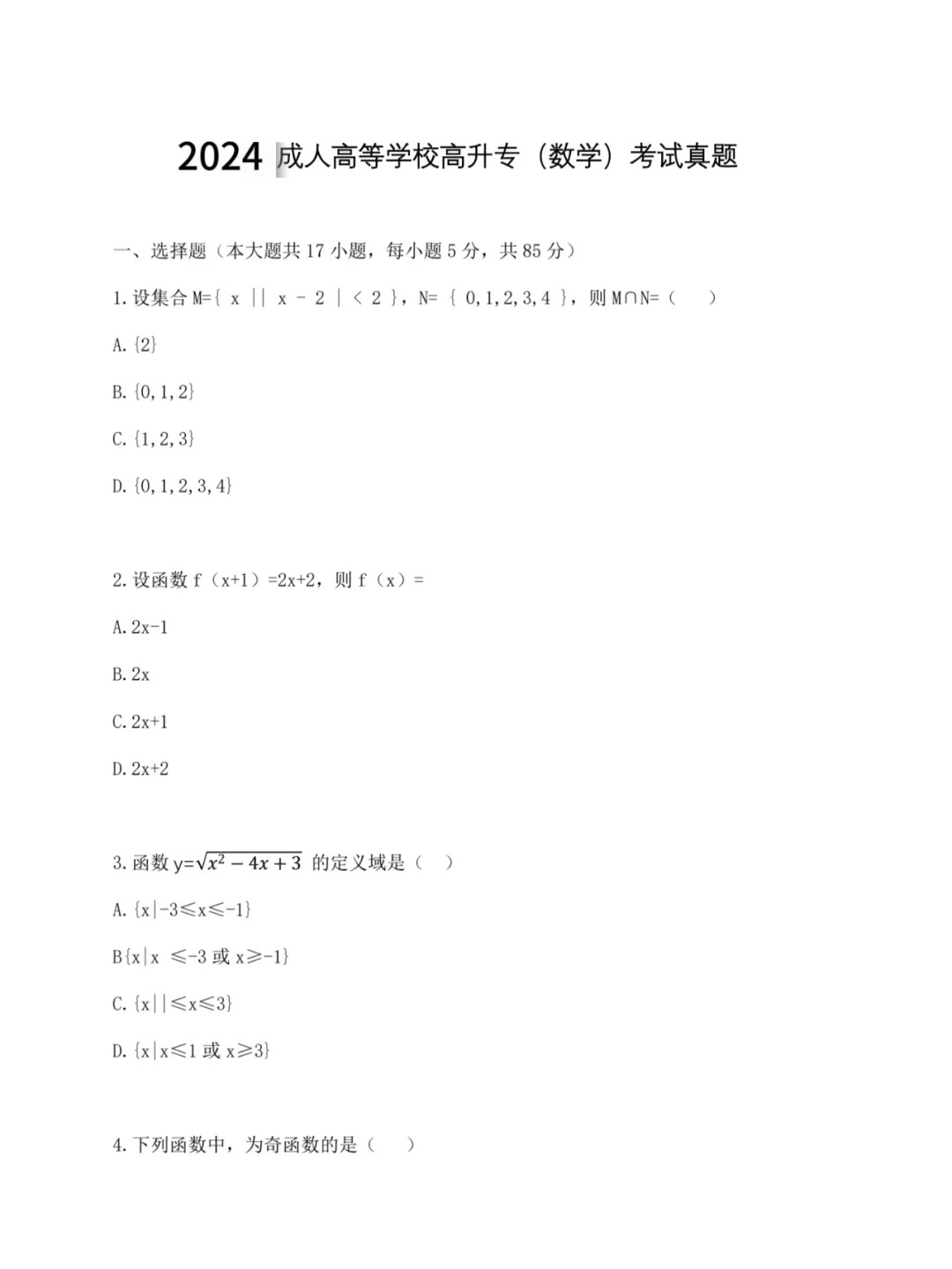 • 2023年浙江成人高考专升本高数二真题及答案!!!