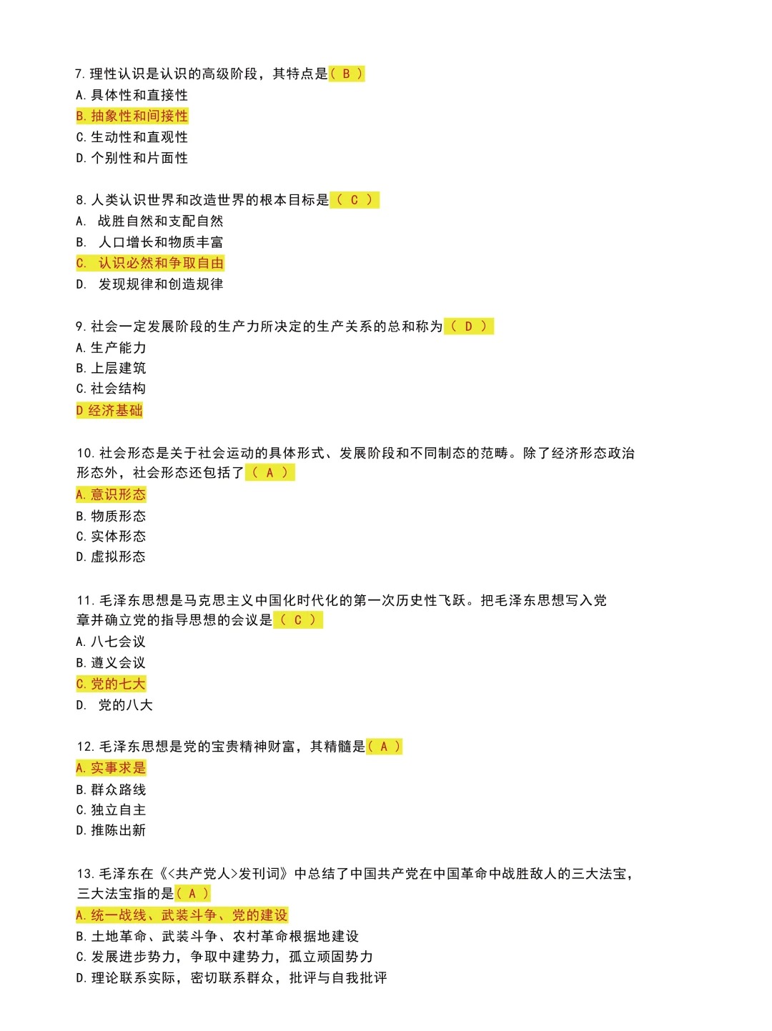 2022年浙江成人高考专升本政治模拟试题及答案(1)
